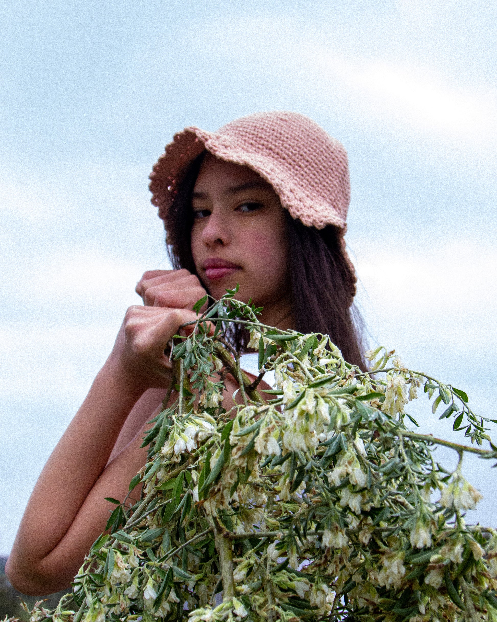 A soft textured bucket hat with a short brim - hand woven from 100% cotton. Beautiful and soft on the head without the fuss of cords.